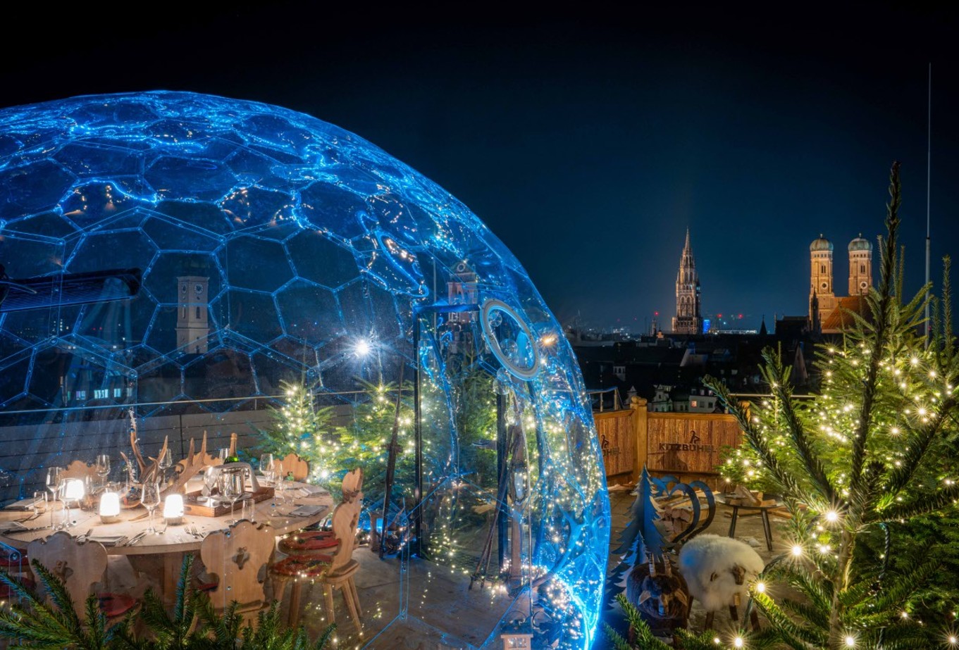 In der Wintersaison 2025/26 bringt das Mandarin Oriental, Munich bereits zum fünften Mal den Winter ins Haus. Auf der Dachterrasse erleben Gäste ein außergewöhnliches Dinner-Erlebnis mit Fotopoint. Neben Branding der beiden Domes und des Zaunes beim Eingang erwartet Gäste eine hochwertige Kitzbühel-Ausstattung mit gebrandeten Gläsern, Servietten, Tischsets und Sitzkissen.