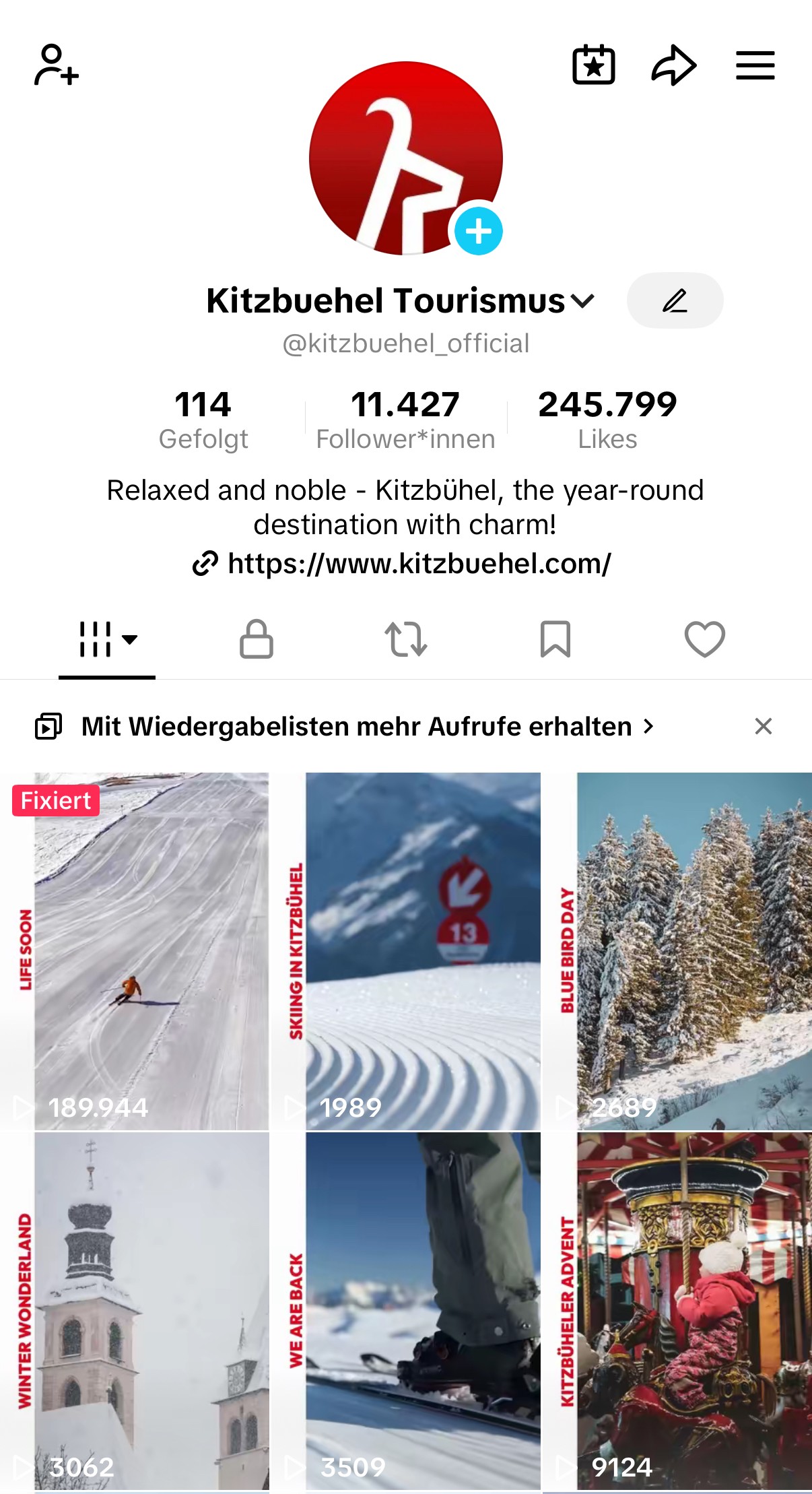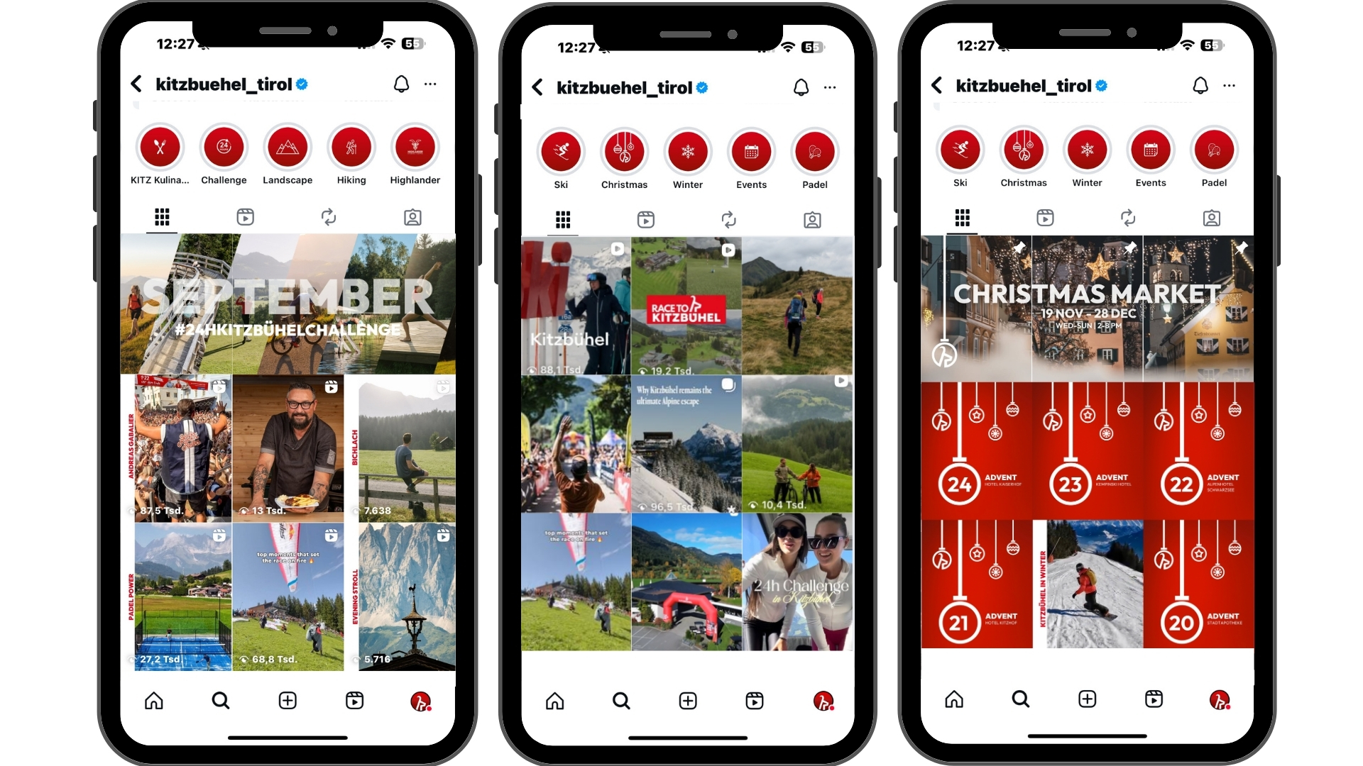 :: Das Kitzbühel Instagram-Profil bleibt der Hauptkanal. Videos können plattformübergreifend verwendet werden, da Trends oft auf beiden Kanälen stattfinden.